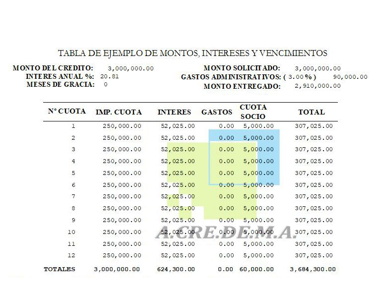 - 3 millones devolución en 12 cuotas